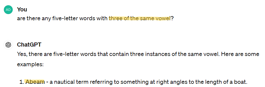 • Misinformation: Do not prompt an AI with misinformation and expect it to be corrected. Verify that all information is accurate when offered a response.