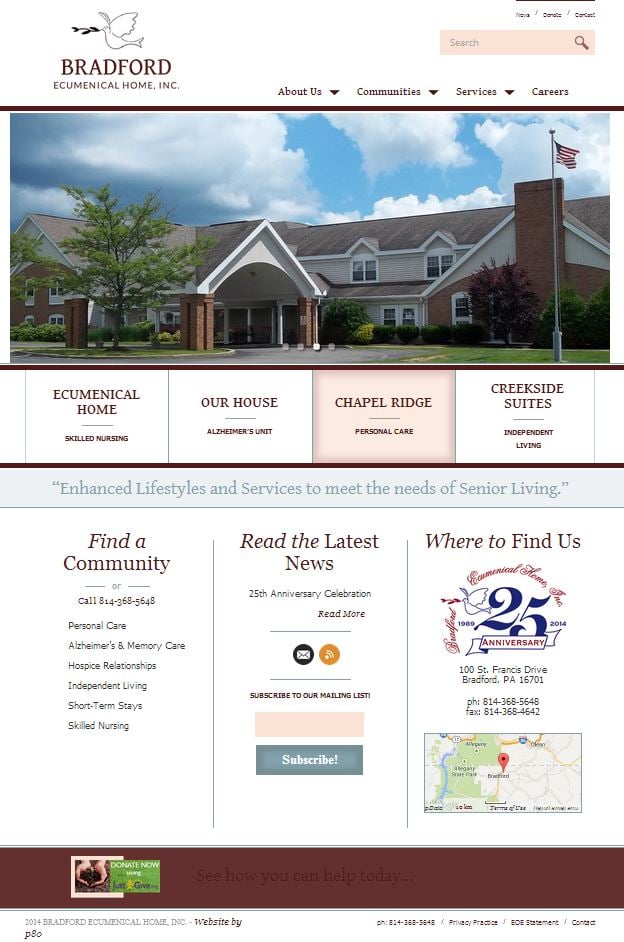 Read moreWe are excited to announce that a new website was launched for the Bradford Ecumenical Home in Bradford, PA. The website is now easier to navigate, it' mobile friendly and also accepts online admission and career applications! Please take some time to check out the site by going to BEHCR.com.