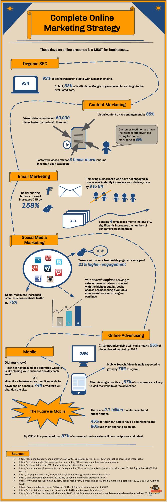 Read moreThese days just having a website is not usually enough. If that's how you see your online presence, my guess is you probably aren't generating and leads or sales from your website...it probably just sits there. A complete online marketing strategy will allow you to reach more individuals, when they are looking, where they are looking, on any device, convert them to a sale or lead, and track them every step of the way. Sounds good, right? Of course it does. But you still may not be convinced. Need more convincing? Check out our infographic below with some stats that just might start changing your mind. Please feel free to share using the embed code below the image. Just in case you aren't a visual person, here are a few key stats!