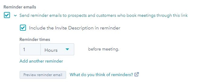 - Optional but recommended: (choose to send reminder emails which are sent to the person that booked the meeting at your chosen schedule times )