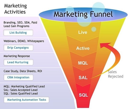 The main difference is that the funnel is a resource for marketers and salespeople to qualify the status of the lead and discuss strategy with other marketers.