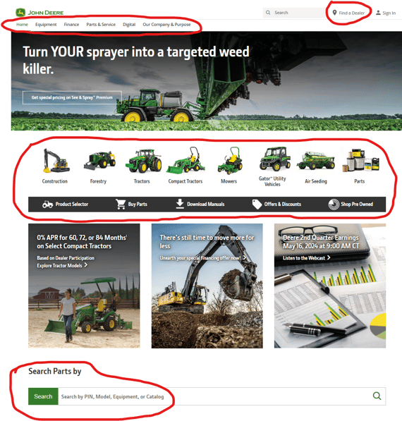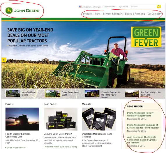 John Deere's homepage is very easy to navigate. The links, images, CTAs, and info are all where you think they'd be. That makes it easy for visitors to immediately find what they're looking for, meaning they're less likely to bounce off the page.